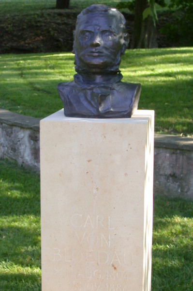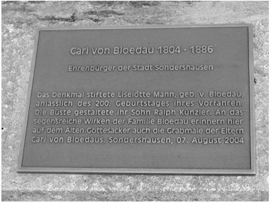 Gestaltung und Ausführung einer Bronzebüste mit Sandsteinsockel und Gedenktafel in Bronze Denkmal des Carl von Bloedau in Sondershausen/Thüringen.
